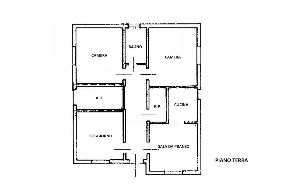 L'immobile, edificato negli anni '70 si dispone su un unico livello ed è composto da soggiorno e cucina in un unico ambiente, tre spaziose camere da letto matrimoniali, un bagno finestrato e un comodo ripostiglio.